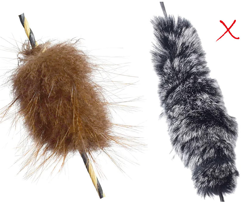Viele Bogenschützen schätzen das traditionelle Aussehen von Felldämpfern. Sie werden auch „Beaver Puffs„ genannt und sollten aus einem Fell sein, das wasserabweisend ist. Oft werden dazu Nutria- oder Biberfell verwendet. Da aber das Fell in der Regel gegerbt ist, ist auch dieser Effekt selten vorhanden. Fell ist relativ leicht und beeinflusst die Flugbahn des Pfeils nur minimal. Fell kann bei Nässe seine Dämpfungseigenschaften verlieren und zudem an Gewicht zunehmen. Es sollte gepflegt werden, um in gutem Zustand zu bleiben, insbesondere wenn es häufig nass wird.