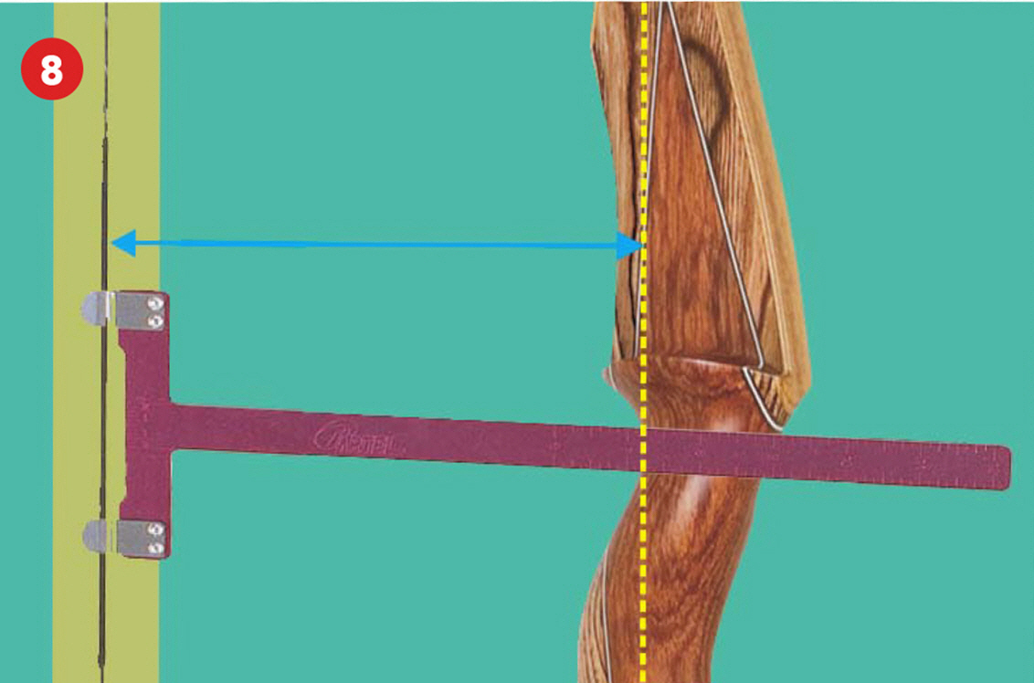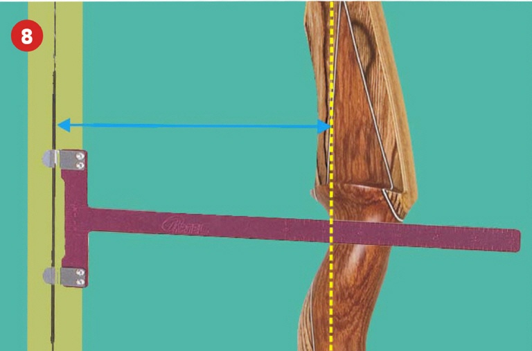 Gemessen wird der Tiller vom Ende des Griffstücks bis zur Sehne. Grundsätzlich sollte der obere Abstand größer sein als der untere. Dadurch hat der untere Wurfarm eine höhere Vorspannung als der obere, wodurch sich die stärkere Biegung des oberen Wurfarms während des Spannens ausgleicht. Der Tiller wird berechnet, indem der untere Abstand vom oberen abgezogen wird. Dadurch ergibt sich eine positive Zahl, also ein positiver Tiller (Beispiel: 18,5 – 17,8 = 0,7 cm).