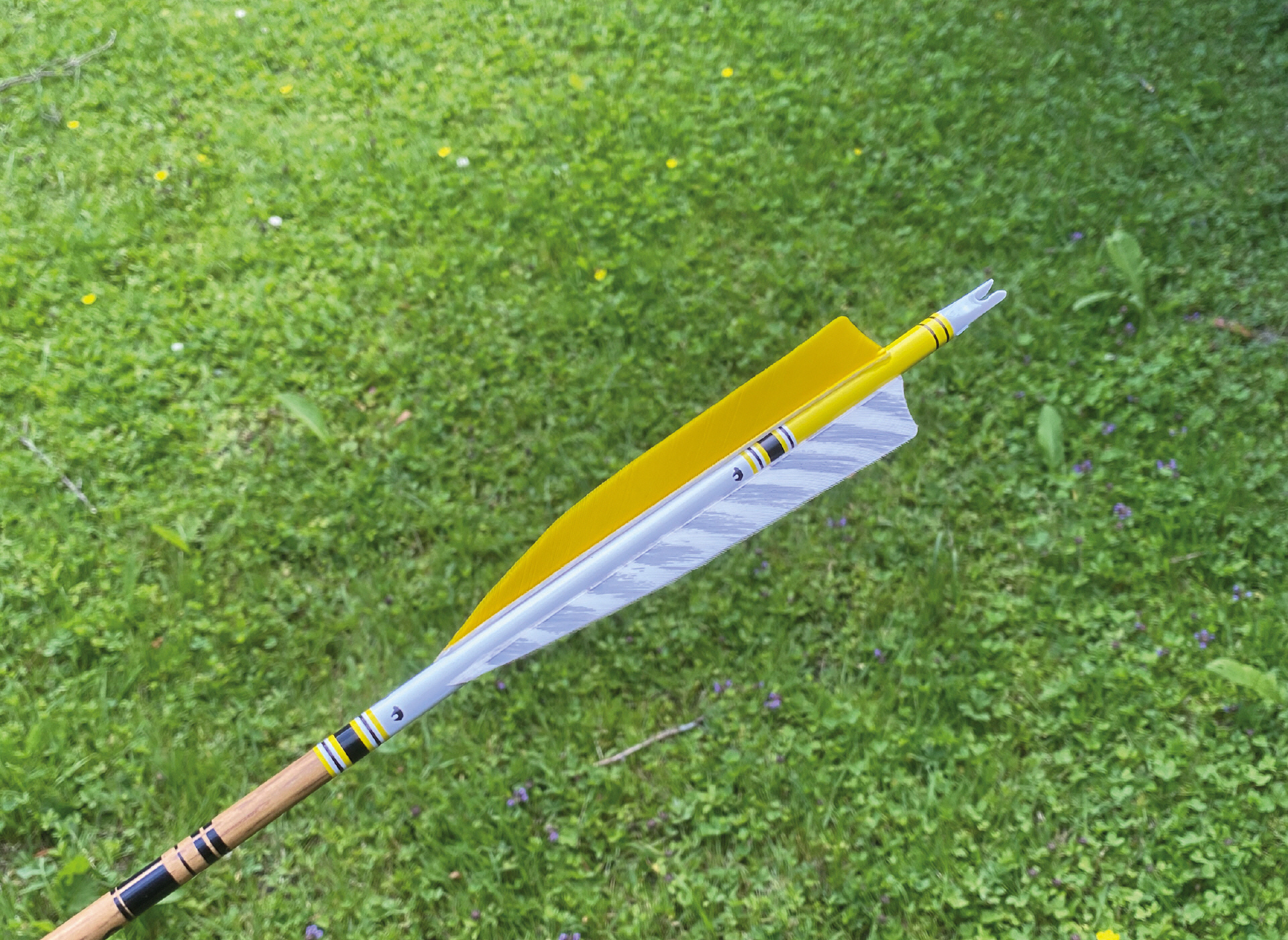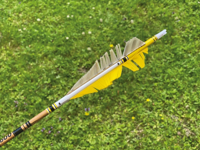 Naturfedern haben Vorteile, aber auch so ihre Nachteile. Zu den Vorteilen gehört zweifelsohne, dass sie sich extrem schnell nach dem Abschuss wieder aufstellen können. Ein Nachteil ist dagegen, dass sie im Lauf der Zeit Abnützungserscheinungen zeigen. Sie fransen beispielsweise aus oder verbiegen sich und können natürlich auch Teile verlieren. Und wenn sie nass werden, leidet die Flugeigenschaft des Pfeils sehr darunter.