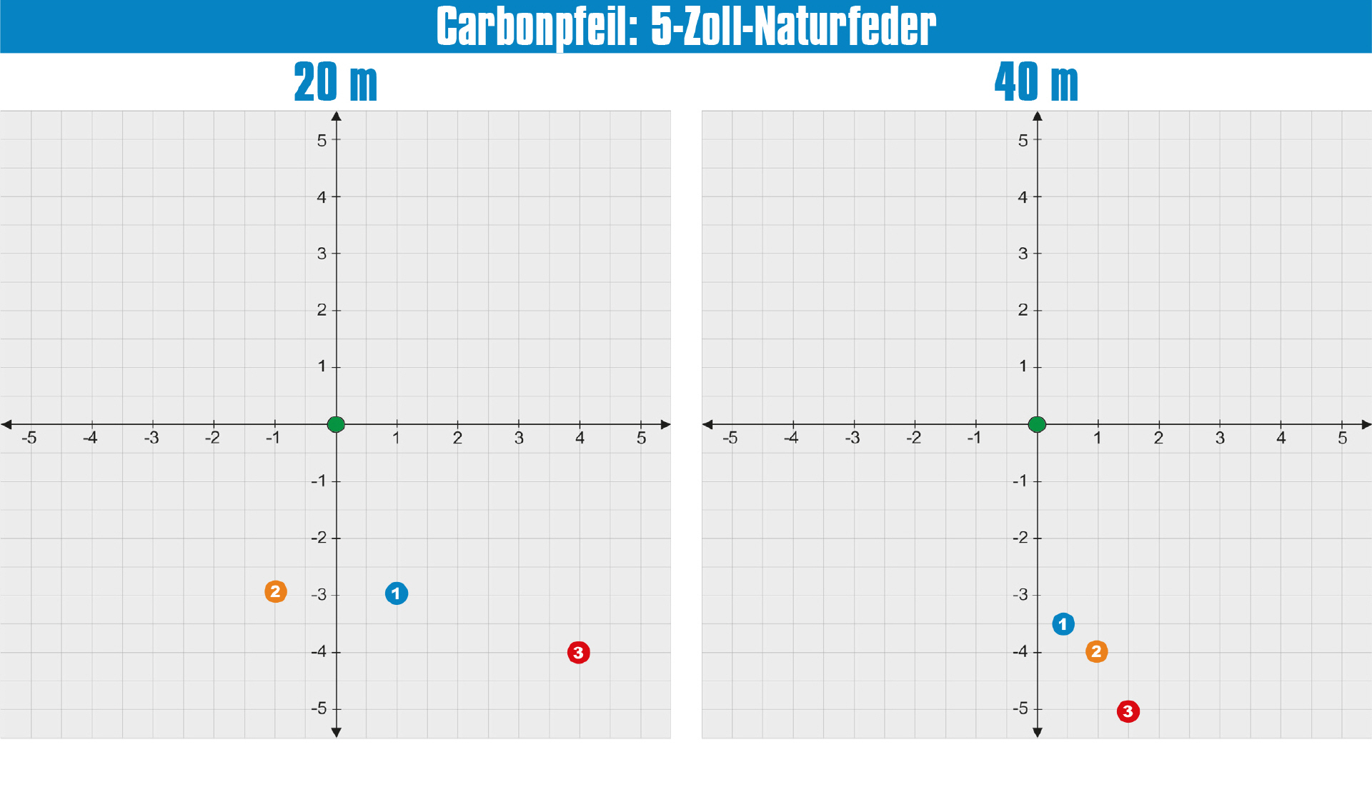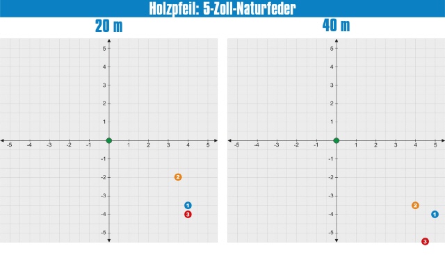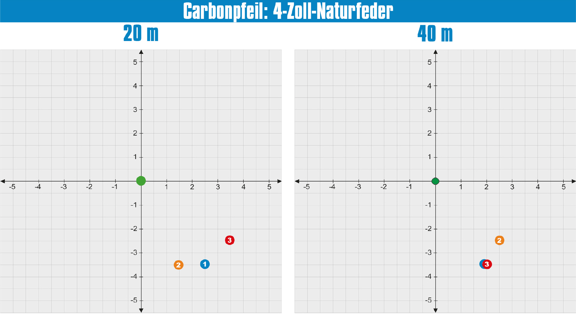 Das heißt im Umkehrschluss: Wenn man nasse oder beschädigte Federn hat, ist die Schusstechnik entscheidend. Wer bei einem Pfeil mit nassen Federn unsauber löst, wird einen sehr unsauberen Pfeilflug haben. Und dieser wird sich auf das Trefferbild auswirken. Und die Abweichungen werden viel größer sein als in unseren Tests.