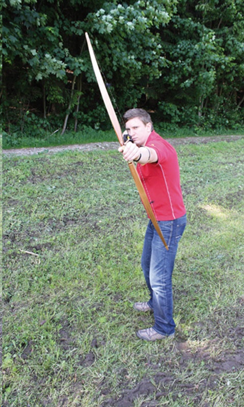 Der Bogen braucht also nur so weit umgelegt werden, bis man das Ziel wieder dreidimensional sieht. Das kann man einfach feststellen, indem man das linke Auge schließt. Sieht man das Ziel nicht, war es zu wenig.