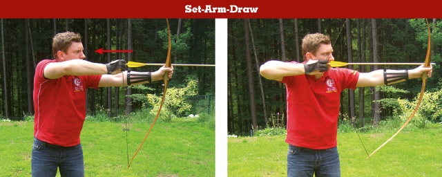 Systemschützen, die eine genaue Zielmethode verwenden und Gap Shooter sollten eher zum Set-Arm-Draw greifen. Die stabile Haltung des Bogenarms ermöglicht eine präzisere Schusskontrolle.
