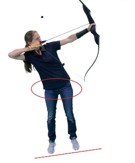 Die Art der Körperhaltung (Knie und Oberkörper) hängt vor allem von der Art des Bogens ab. Beim Langbogen wird oft eine schräge Haltung eingenommen, wobei der Oberkörper leicht nach vorne geneigt wird und Oberkörper und Unterschenkel parallel sind. Beim Recurvebogen mit einem großen Schussfenster wird meist eine aufrechtere Körperhaltung eingenommen.