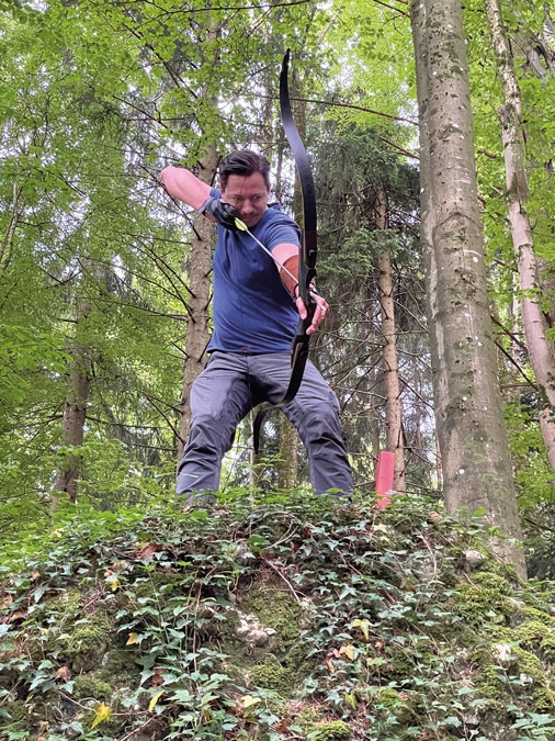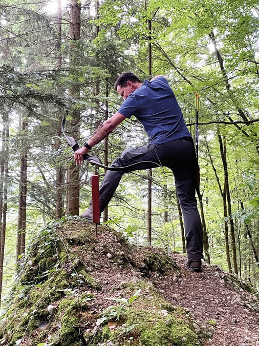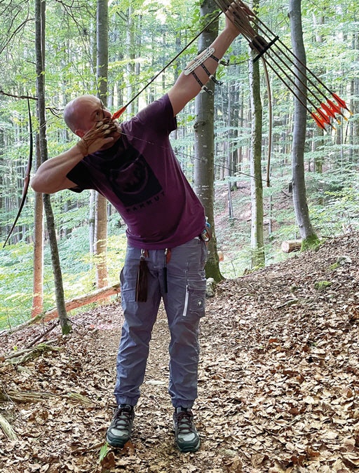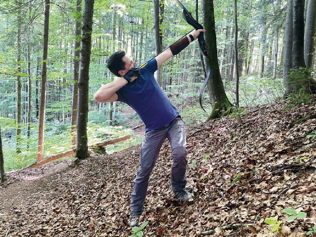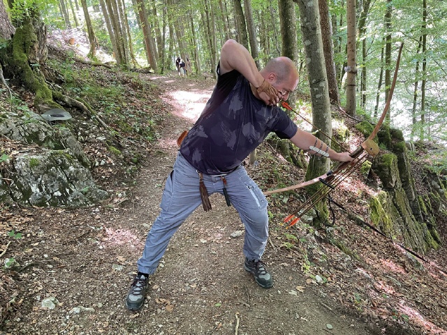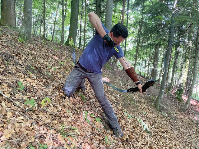 Oft passiert es, dass jemand das alles nicht beachtet und trotzdem bei einem kurzen, steilen Bergaufschuss trifft. Was ist hier passiert? Durch das falsche T wurde zu kurz gezogen. Dadurch hatte der Pfeil zu wenig Geschwindigkeit und traf tiefer als normal. Der zweite Fehler war, dass genau in die Mitte gezielt wurde. Hätte man das T richtig gemacht, hätte der Pfeil höher getroffen. Mit der geringeren Geschwindigkeit hat es aber wieder gepasst. Es haben sich also zwei Fehler gegenseitig aufgehoben. Zufall und nicht Können könnte man sagen.