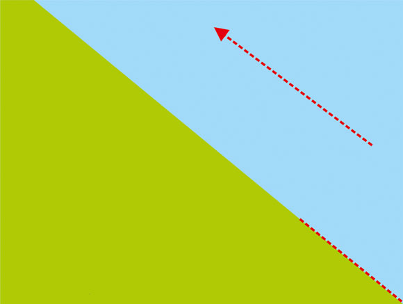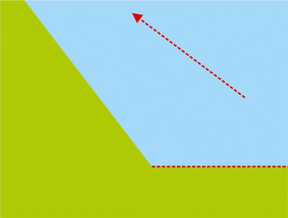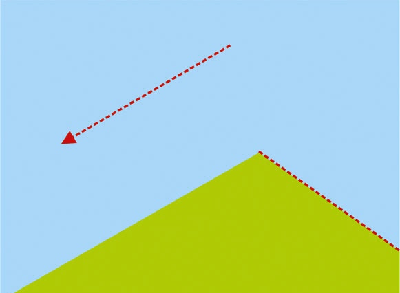 Schießt man in der Ebene, beschreibt der Pfeil im Flug eine Parabel. Würde man senkrecht nach oben oder unten schießen, wäre die Flugbahn eine Gerade. Ändert sich nun der Abschusswinkel, wird die Flugbahn immer flacher, bis sie bei einem Senkrechtschuss eine Gerade wäre.