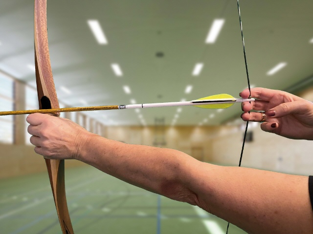 Die beste Lösung ist relativ einfach. Man muss den Handrücken der Zughand flach halten. Damit ist eigentlich fast garantiert, dass der Pfeil nicht mehr zur Seite weggeht.