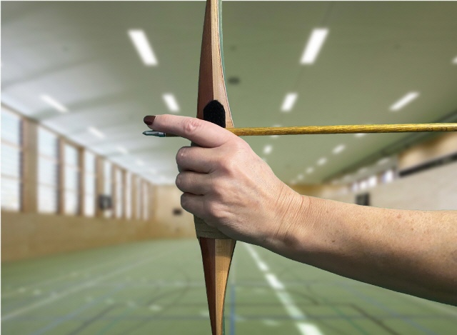 Eine Lösung könnte sein, dass man mit Untergriff schießt. Das ist aber in Wettkämpfen nur in den Recurve-Klassen erlaubt. Mit dem Langbogen muss man hier mediterran schießen.