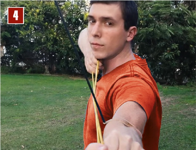 Um das zu vermeiden, sollte man bei Position 3 noch einige Grad an Ausdrehung dazu geben. Damit ist man auf der sicheren Seite und die Sehne schlägt sicher nicht an (Bild 4).