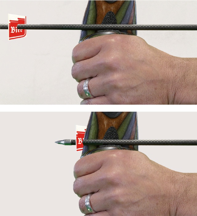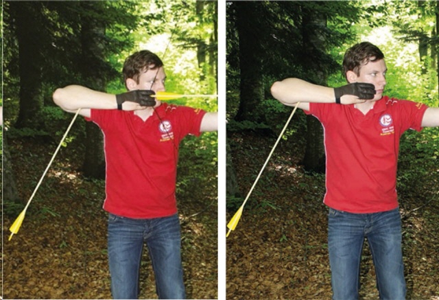 Man kann sehen, ob die Pfeilspitze vor dem Abschuss nach vorne wandert. Ist das der Fall, schießt man nicht aus der Rückenspannung. |