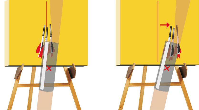 Es gibt bekanntlich drei Möglichkeiten zu stehen (Offen, parallel und überdreht). Ist der Stand zu offen, besteht die Gefahr, dass man den Oberkörper zu wenig ausdreht und damit weiter links trifft.