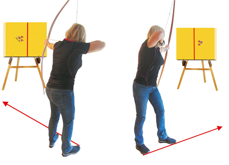 Steht die Sehne neben dem Auge, zeigt der Pfeil üblicherweise nach links. Je weiter es neben dem Auge ist, desto größer ist die Abweichung. Um trotzdem zu treffen, muss man bewusst oder unbewusst die Richtung korrigieren.
