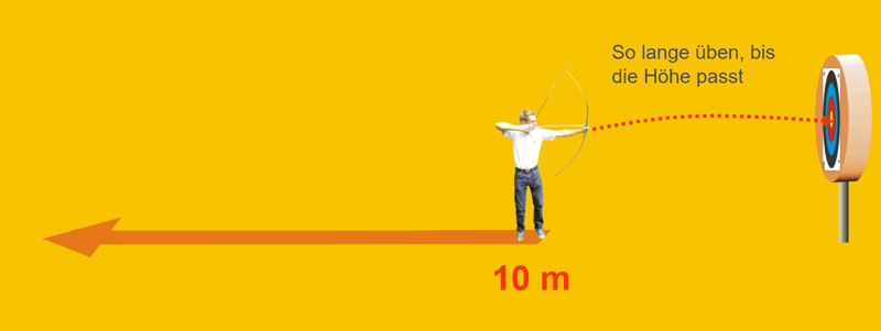 Wer nur den Punkt, den er treffen möchte, betrachtet und den Winkel (Höhe) des Bogenarms unbewusst in die richtige Position bringt, schießt instinktiv.