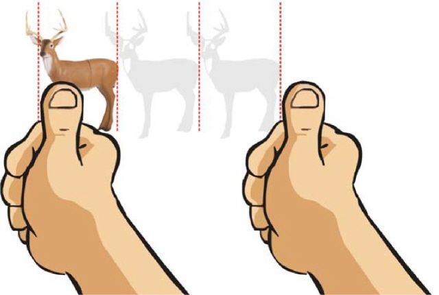 Im Gelände kann unser Unterbewusstsein bereits aufgrund der Gegebenheiten ein erstes Gefühl für die Entfernung entwickeln. Orientierung bietet dabei die relative Größe bekannter Objekte wie 3-D-Tiere oder Bäume. Das gefühlsmäßige Einschätzen von Entfernungen ist besonders für instinktive Schützen wichtig. Hierbei genügt oft eine grobe Kategorisierung: