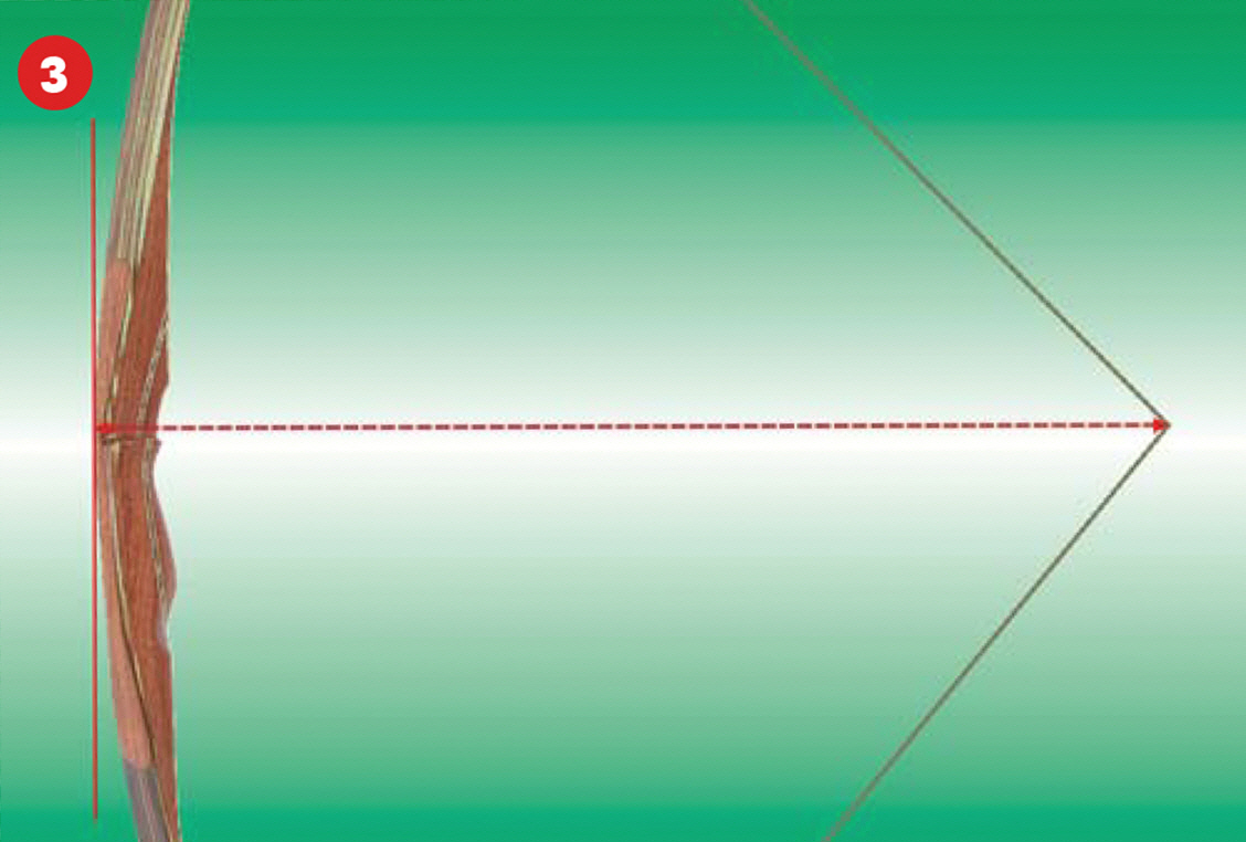Nach dem AMO-Standard (Archery Merchants and Manufacturers Organization) wird die Länge des Bogens ermittelt, indem man im ungespannten Zustand auf der Seite, die dem Schützen zugewandt ist, von der Sehnenkerbe des oberen Wurfarms bis zur Kerbe des unteren Wurfarms misst, und nicht direkt von Spitze zu Spitze. Die Linie, entlang der gemessen wird, geht dabei nicht an der Biegung des Mittelteils entlang.