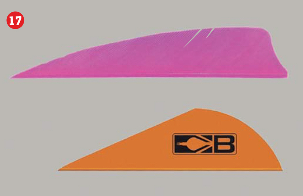 Es gibt Plastikfedern (Vanes) und Naturfedern. Vanes gibt es in 2 Formen, Shield und Parabol. Es gibt sie von 2 bis 5 Zoll in Abstufungen von 1/2 Zoll.
