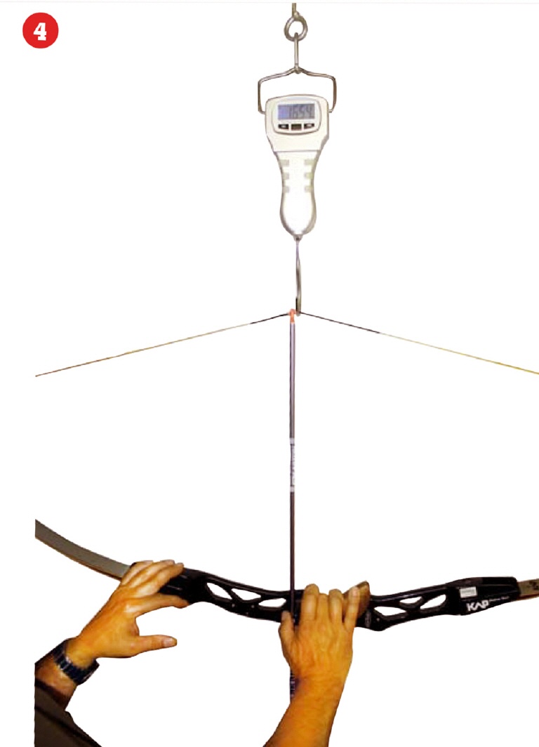 Das Zuggewicht kann man am besten mit einer digitalen Bogenwage messen. Wichtig ist, dass die Waage robust ist und eine Pfundzahl bis zu 100 Pfund aushält, sowie die Werte in Pfund anzeigen kann.