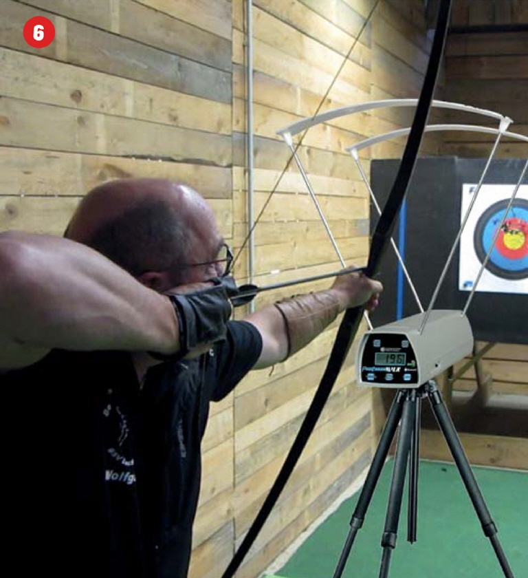 Will man die Geschwindigkeit seines eigenen Bogens messen, muss man durch einen Chronographen schießen; und zwar auf unterschiedliche Entfernungen. Dazu ist es wichtig, dass man sich auf die Schusstechnik – und hier vor allem auf den Auszug – und weniger darauf konzentriert, dass der Bogen möglichst schnell ist. Ein Durchschnittswert aller Messungen ergibt dann eine realistische Geschwindigkeit.