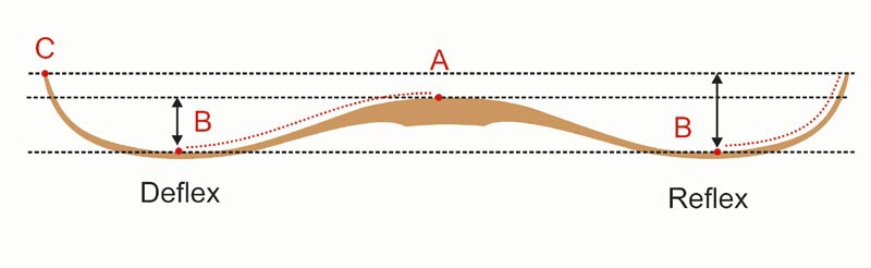 Durch eine reflex-deflexe Bauweise ist der Wurfarm bereits in einer Vorspannung. Je stärker diese ist, desto mehr Energie wird beim Ausziehen gespeichert und desto mehr wird auch auf den Pfeil übertragen.
