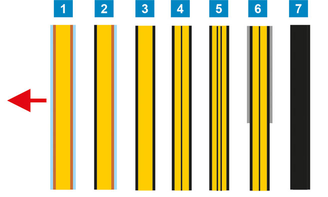 Carbon ist, wie oben bereits mehrfach erwähnt, leichter als Glas. Das Problem ist, dass Carbon sehr gut auf Zug, aber eher schlecht auf Druck reagiert. Deshalb verbauen viele Hersteller eine Lage Carbon vorne – also an der dem Schützen abgewandten Seite – und hinten – an der dem Schützen zugewandten Seite – Glas. Einige haben aber das Problem in den Griff bekommen und verwenden für beide Seiten Carbon.