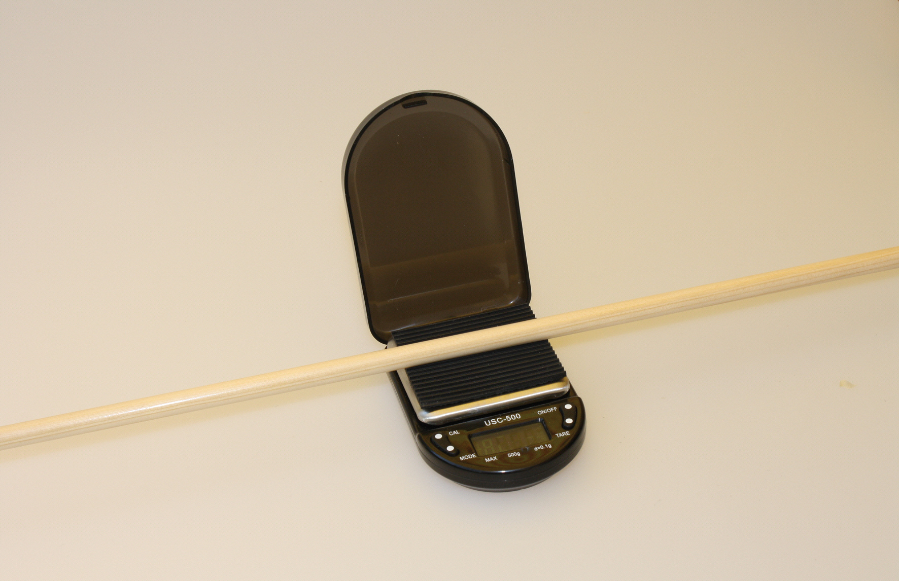 Kauft man Schäfte in einer bestimmten Bandbreite, werden sicher nicht alle auch passen. Es ist deshalb notwendig, zumindest die schlechtesten auszusortieren. Um festzustellen, welche Schäfte gerade sind, rollt man sie einfach über den Tisch. „Eiert“ einer sehr stark, kann man ihn aussortieren. Der Spine wird mit einem Spintester festgestellt. Mit einer Grain-Waage kann man das Gewicht feststellen. Ein Tipp: Versuchee immer Gruppen von 10 bis 12 in einem festgelegten Toleranzbereich (z.B. 2 Gramm) zu finden.