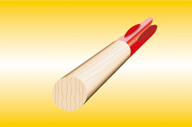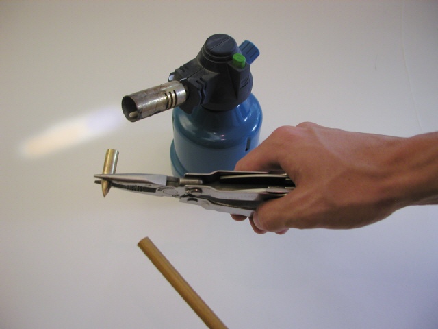 Wichtig ist dabei, dass die Spitze gerade aufgesetzt wird. Hier gibt es zwei Möglichkeiten. Eine besteht darin, dass nur die Spitze mit einem Gasbrenner oder einer Heißluftpistole erwärmt wird. Das hat den Vorteil, dass vor allem bei Spitzen mit paralleler Bohrung der Schaft leichter in die Spitze hineingedrückt werden kann. Es hat aber auch den Nachteil, dass sehr viel vom Kleber wieder herausgedrückt wird. Vor allem im Gelände ist es ratsam, nur den Kleber am Schaft zu erwärmen. Dadurch bleibt mehr Kleber in der Spitze. Sie hält damit sehr gut und der Kleber kühlt sehr schnell ab. Bei Spitzen mit paralleler Bohrung, bei der nur die Spitze erneuert wird, ist diese Methode wesentlich besser.