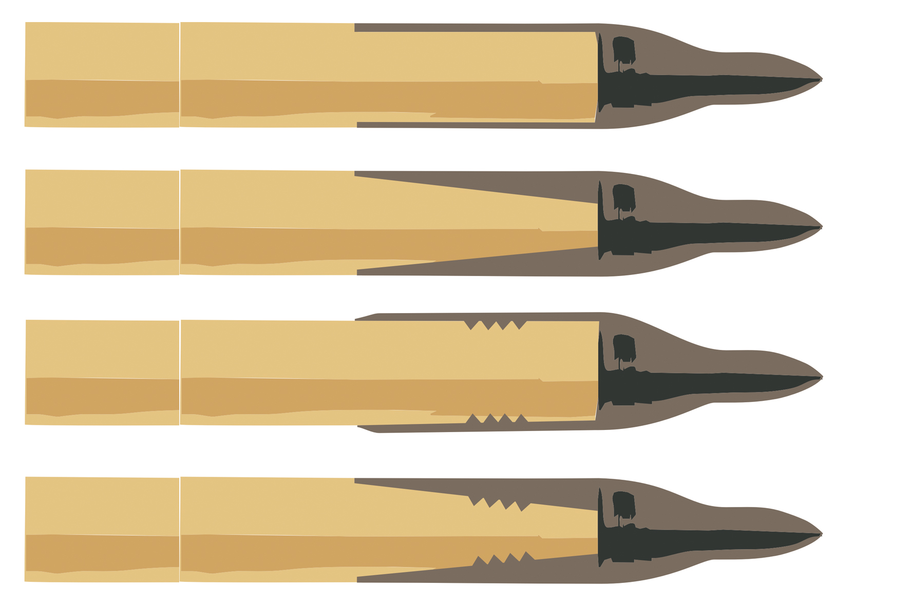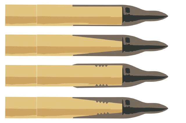 Es können Spitzen mit einem Konus oder parallele verwendet werden. Für den Konus wird ebenfalls ein Spitzer verwendet. Üblicherweise sind Nock- und Spitzenkonus auf einem Tool vorhanden.