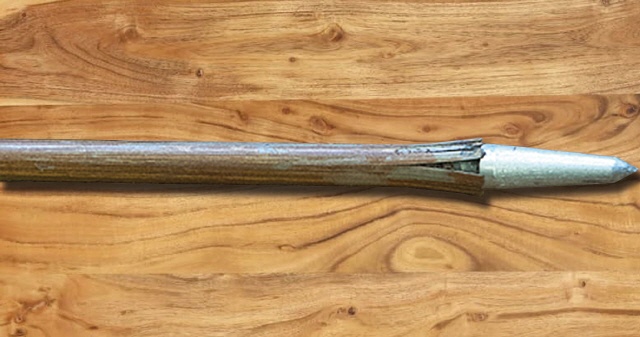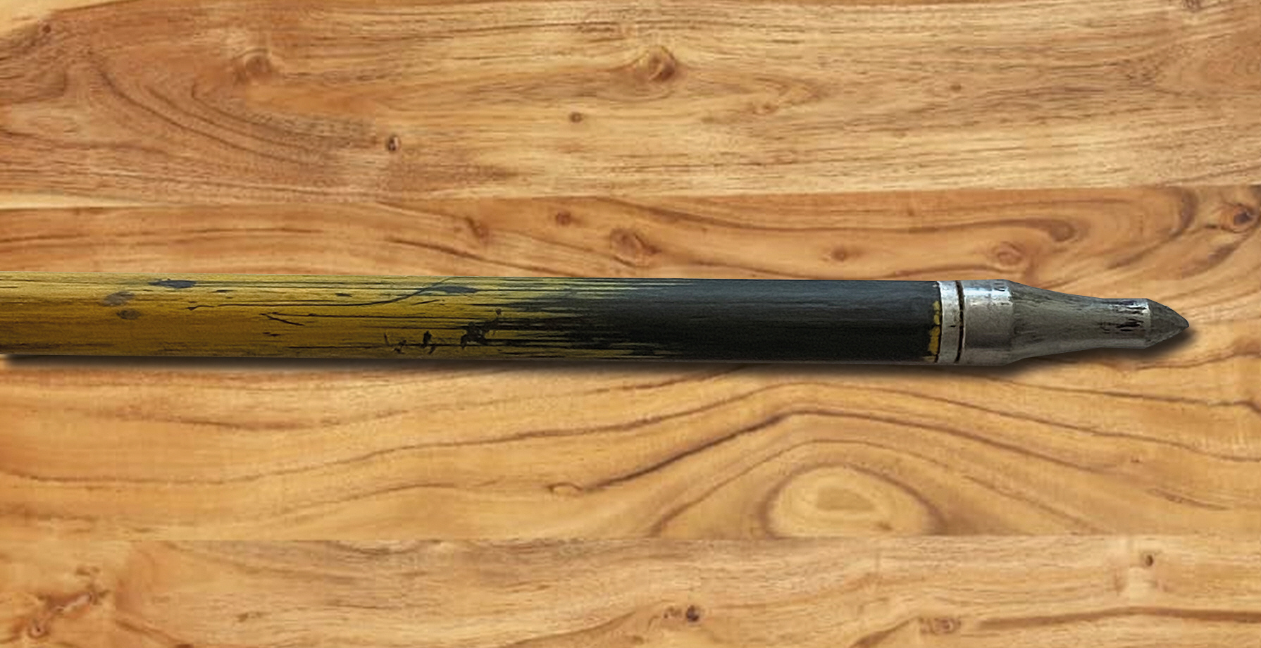 Worauf sollte man nun bei billigeren Pfeilen achten? Zuerst einmal geht es um den Pfeilbruch. Da ja die meisten traditionellen Schützen auf 3-D-Parcours unterwegs sind, bleiben Fehlschüsse nicht aus. Und da in der Natur Steine des Öfteren auch rund um 3-D-Ziele liegen, sind abgebrochene Pfeile oft das Resultat. Auch spleißen Schäfte an der Spitze oft auf, wenn sie auf einen harten Gegenstand treffen. Ähnliches gilt für das Ende des Schaftes. Auch hier platzt der Schaft beim Auftreffen auf einen harten Gegenstand auf. Und ein Abrieb der Holzimitation zeugt auch nicht gerade von guter Verarbeitungsqualität.