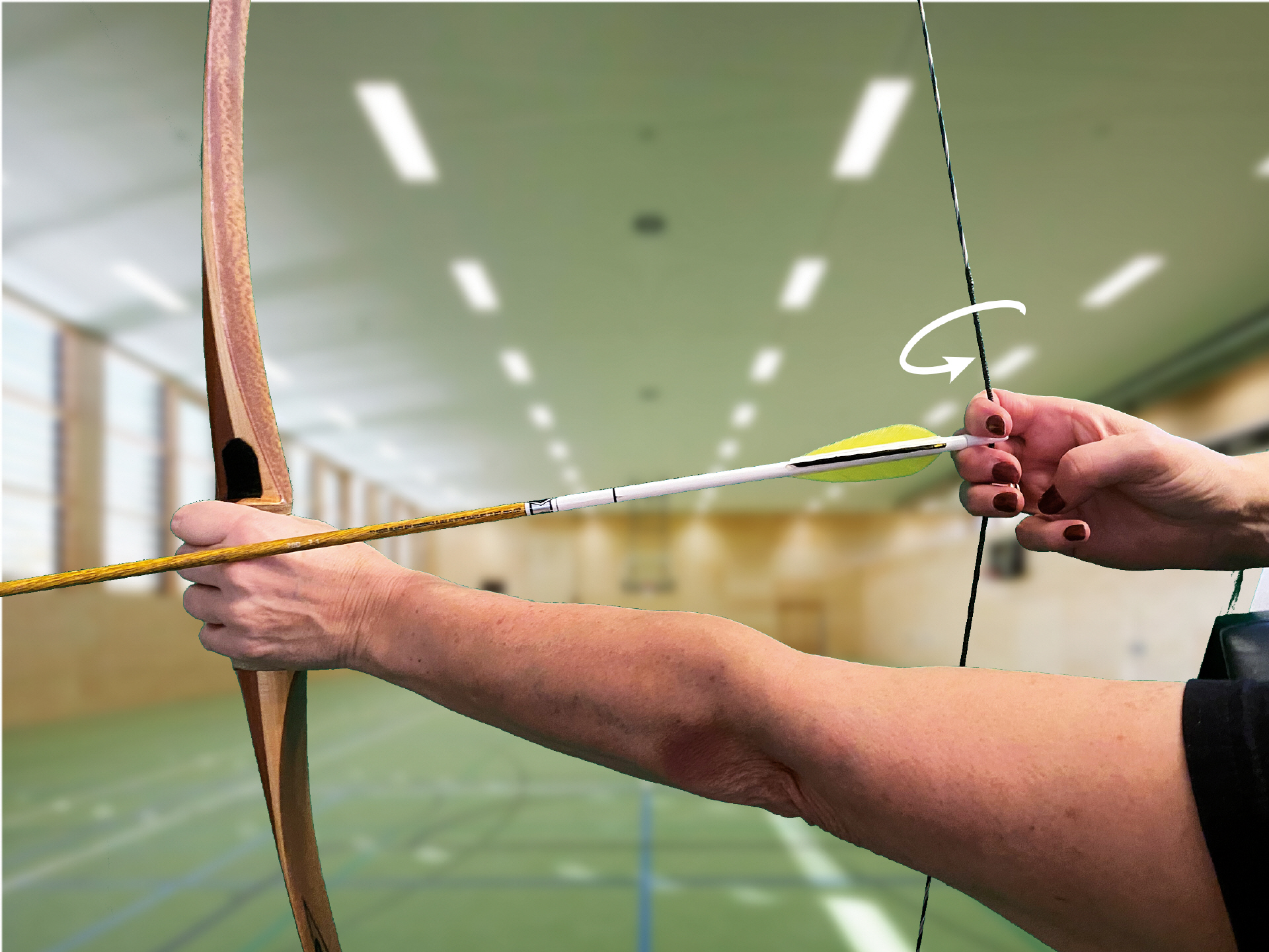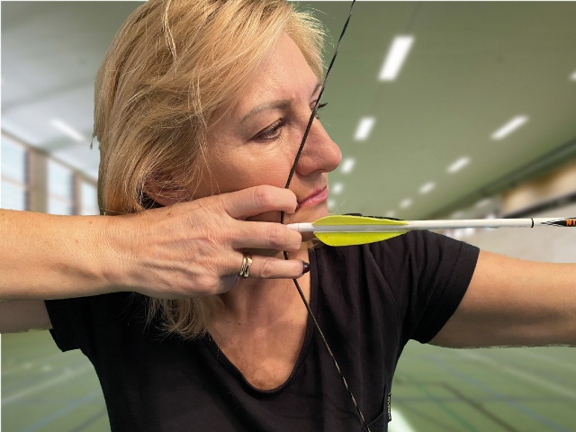 Die beste Lösung ist relativ einfach. Man muss den Handrücken der Zughand flach halten. Damit ist eigentlich fast garantiert, dass der Pfeil nicht mehr zur Seite weggeht.