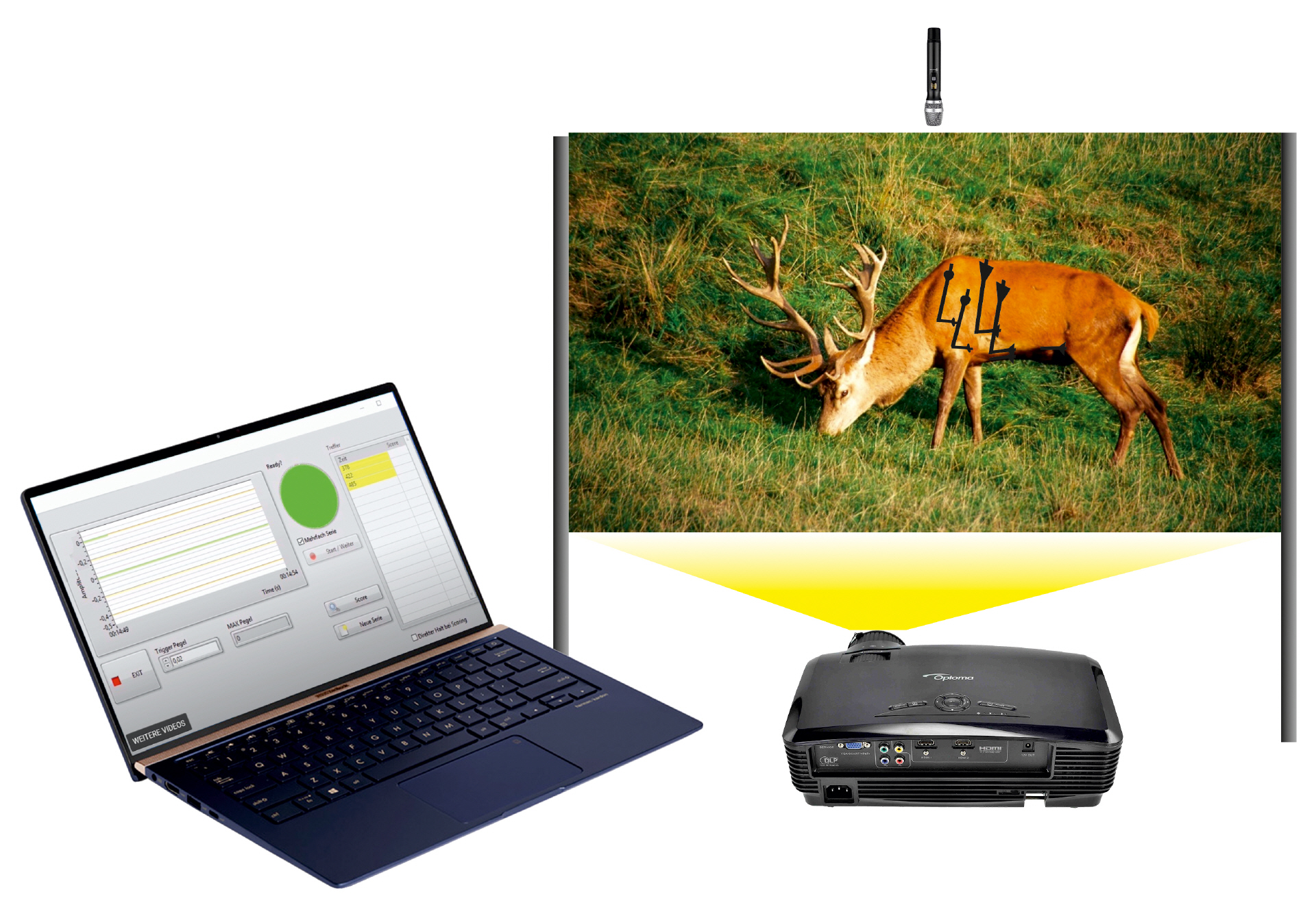 Zur Treffererkennung werden keine Sensoren verwendet. Die mitgelieferten Videos beinhalten jeweils 6 Schuss-Szenen. Bei jeder Szene leuchtet ein Spot auf, auf den man genau zu diesem Zeitpunkt schießen muss. Sind alle Szenen durch, werden die einzelnen Schusszeitpunkte wieder angesprungen und man kann die Treffer dann per Hand zählen. Eine automatische Treffererkennung gibt es bei diesem System nicht. Auch können Szenen selbst erstellt und in das System eingebunden werden.