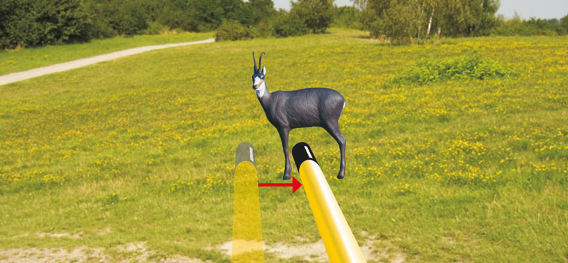 Dann schießt man auf ungefähr 20 Meter diesen Pfeil. Wenn er nach rund 10 Metern einen Haken nach links macht und auch links trifft, hat man den Fehler gefunden.