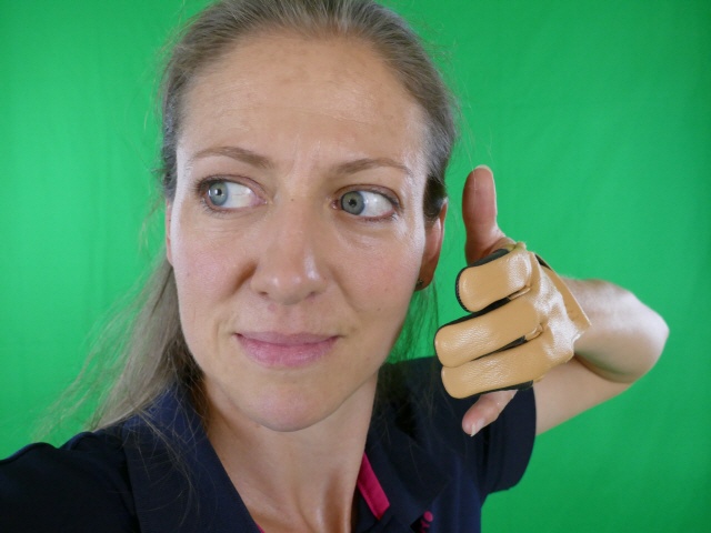 Man braucht jetzt nur mehr die Finger entspannen und darauf achten, dass die Hand am Gesicht bleibt. Sie schnellt von selbst nach hinten.
