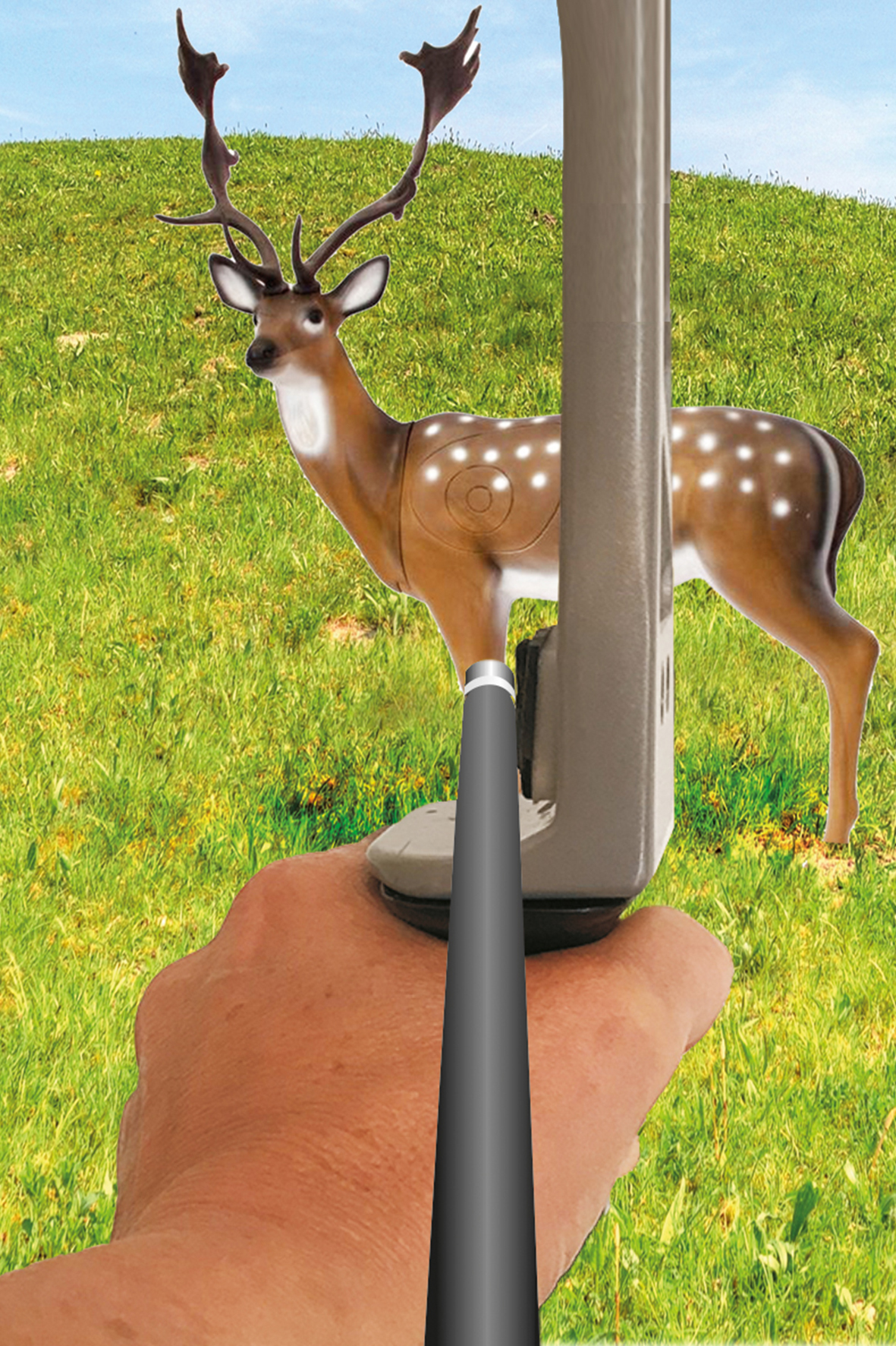 Erklären: Die Pfeilspitze wird rund 0,5 Meter unter das eigentliche Ziel gehalten.