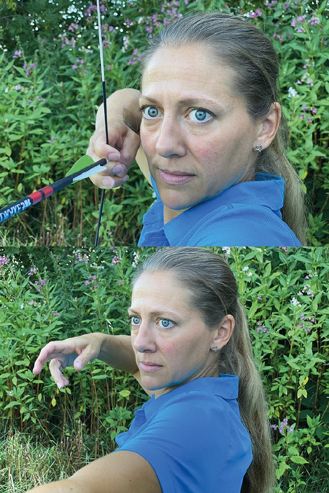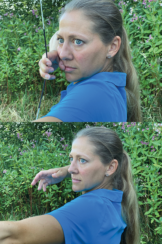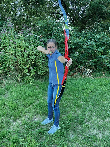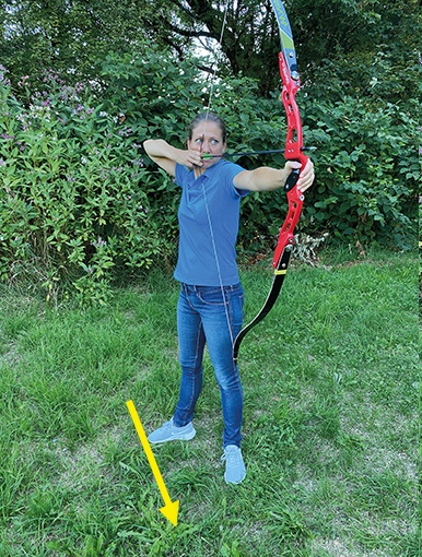 Wenn man die einzelnen Varianten ausprobiert, ist es ratsam, einen Kollegen zu bitten, darauf zu achten, wo die Sehne vor dem Abschuss steht. Ist zu sehen, dass die Sehne nicht anschlagen wird, gibt es ein Ok.