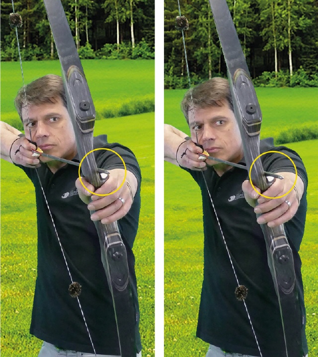 Beispielsweise sollte er erkennen, ob tatsächlich die Rückenspannung aufgebaut wurde. Das kann man unterschiedlich feststellen. Zum einen sieht man es an der Bewegung des Pfeils. Bleibt dieser stehen oder bewegt er sich kurz vor dem Abschuss nach vorne. Auch sieht man es am Schussablauf selbst. Oft kann jemand, der nicht geübt im Analysieren ist, das nicht erkennen.