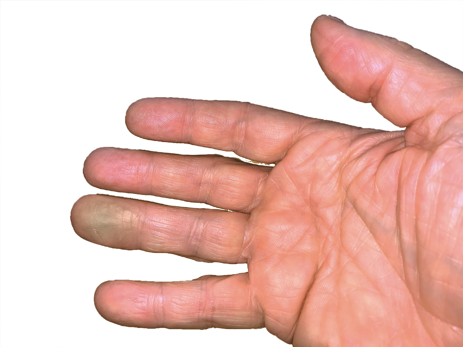 Ähnliches kann auch durch einen schlecht verarbeiteten Handschuh passieren. Oft ist genau an dieser Stelle im Handschuh innen eine Naht. Und die drückt dann auf die Stelle am Finger. Auch hier kann es zu Entzündungen kommen.