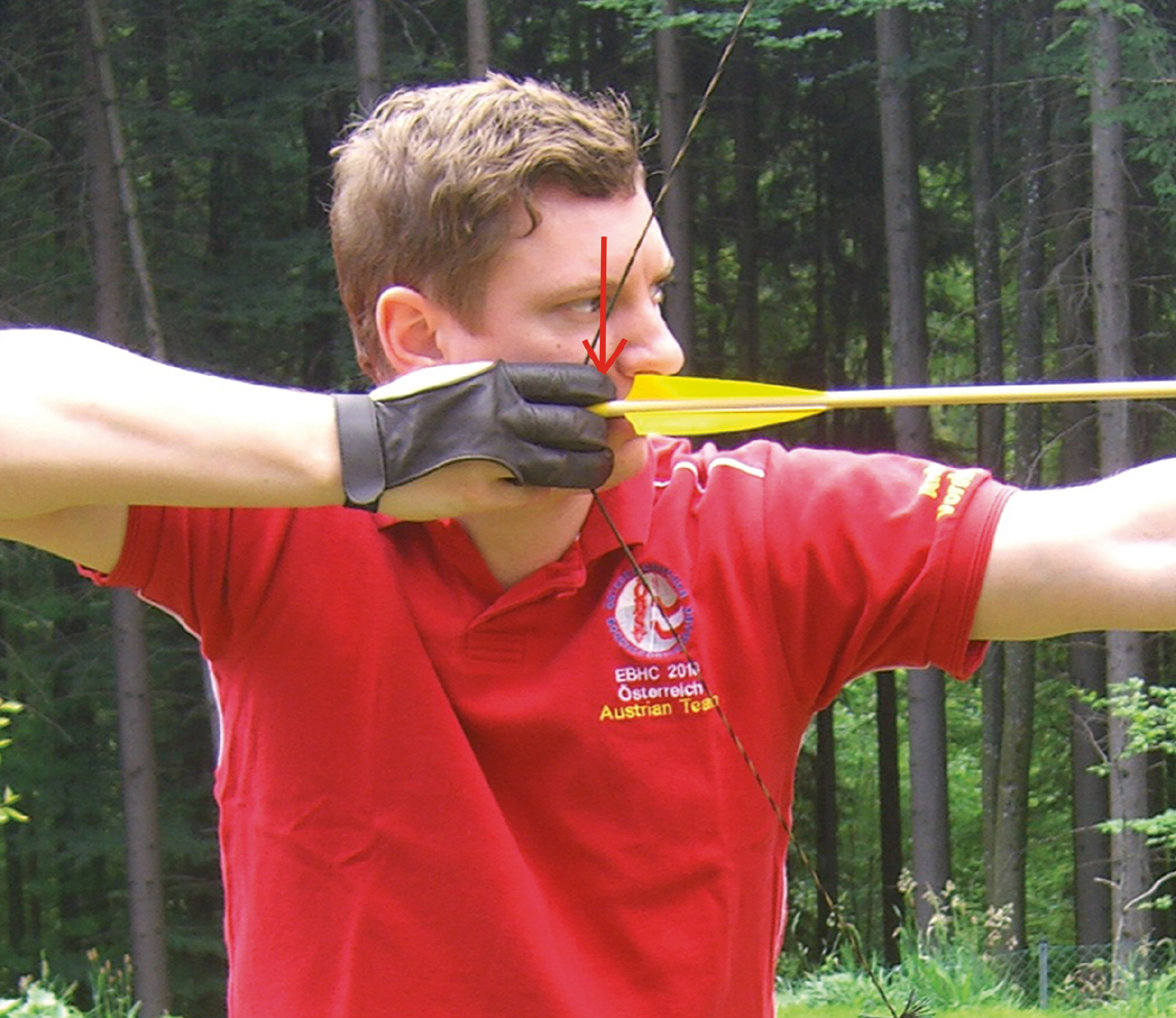 Schießt man mediterran, also mit zwei Fingern unter und einem über dem Pfeil, kann es vorkommen, dass die Nocke des Pfeils auf die Innenseite des Zeigefingers auf den Fingernagel drückt. Wer oft schießt, wird vielleicht schon gemerkt haben, dass man an dieser Stelle oft auch einen kleinen Hautwulst bekommt. Hin und wieder kann es aber auch vorkommen, dass sich der Nagel hier entzündet, was beim Schießen sehr schmerzhaft sein kann.
