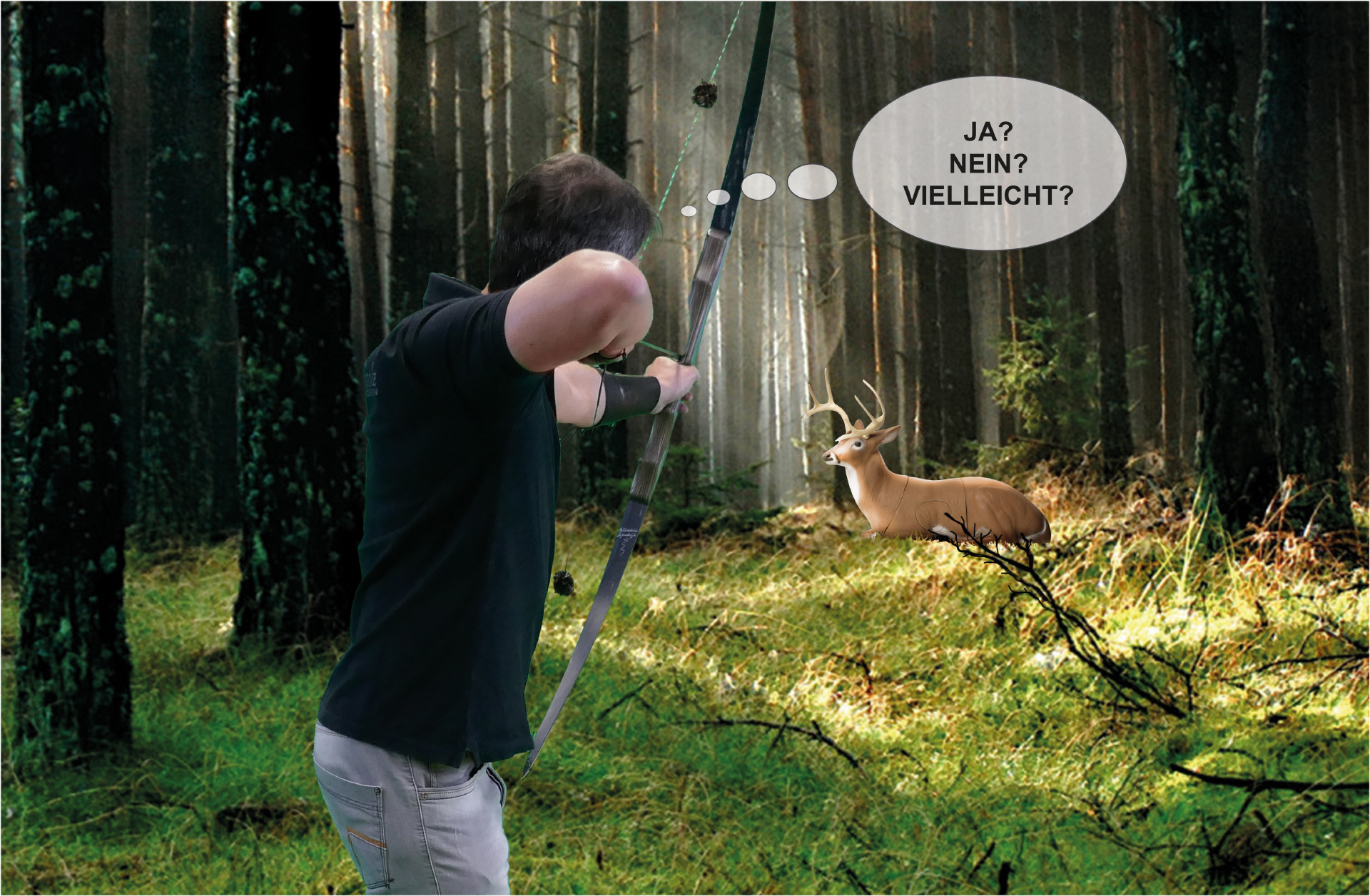 Frühes Lösen verhindern: Vor jedem Schuss geht man in den Vollauszug, macht einen 8er mit dem Pfeil und setzt wieder ab. ... Target Panic loswerden |