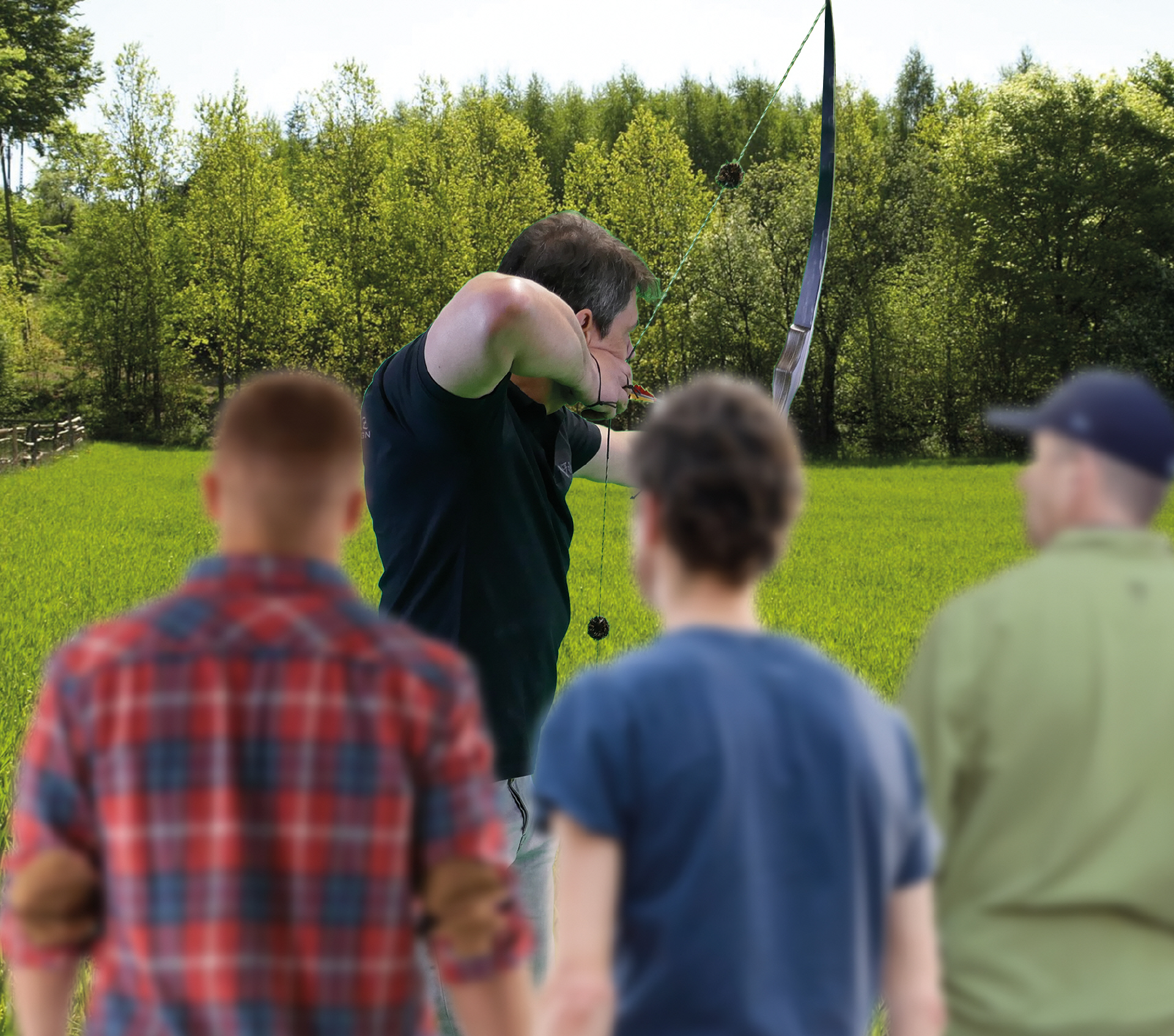 Eine sehr einfache Variante ist, dass man vor jedem Schuss einmal aufzieht, zwei bis drei Sekunden im Anker bleibt und dabei die Rückenspannung aufbaut und wieder absetzt. Eine andere sehr einfache Variante ist, dass man aufzieht, in die Rückenspannung geht und bewusst mit der Pfeilspitze einen Achter im Ziel macht und wieder absetzt. Erst dann zieht man wieder auf und schießt. Das kann man zum einen im Training konsequent machen. Diese Technik bietet sich aber auch am Parcours oder bei einem Turnier an. Wichtig ist, dass man das durchzieht.