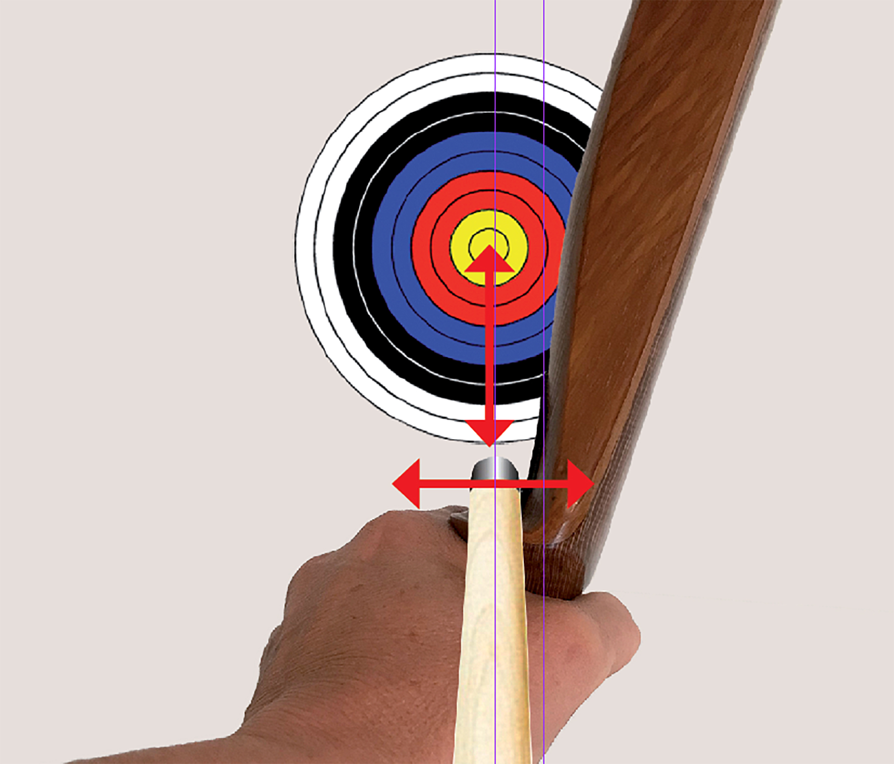 Was Zielen mit einer Zielhilfe ist, dürfte klar sein. Traditionelle Schützen haben hier nur die Möglichkeit mit der Pfeilspitze (Point of Aim) oder dem Bogenfenster zu zielen.