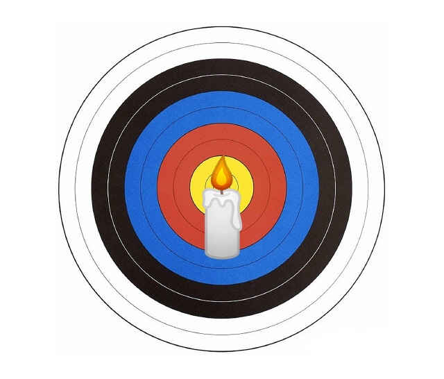 Und viele behaupten von sich, den Pfeil beim Zielen nicht zu brauchen. Wie kann man nun feststellen, welche Zieltechnik verwendet wird. Ganz einfach: Wenn man die Möglichkeit hat, einen Raum komplett abzudunkeln, kann man folgende Übung machen. Man stellt in rund 15 bis 18 Meter Entfernung eine kleine Kerze auf. Die Kerze ist deswegen wichtig, weil das Unterbewusstsein aufgrund der Flammengröße die Entfernung einschätzen kann. Die Schützen stellen sich nun auf und das Licht wird ausgeschalten. Und jetzt hört man es scheppern. Die Pfeile stecken teilweise 2 Meter über oder unter dem eigentlichen Ziel. Man sollte nach jedem Durchgang das Licht wieder anmachen. Das deshalb, weil man sich auch an das Dunkel gewöhnen kann.