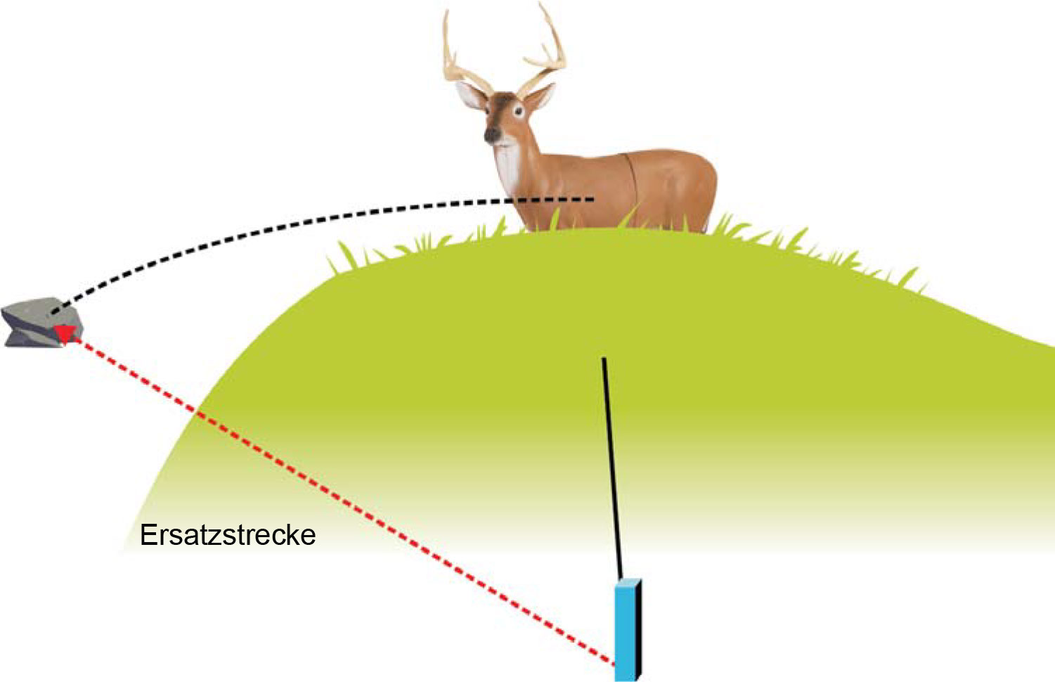 Oft verhindert die Geländebeschaffenheit, dass die gesamte Strecke bis zum Ziel sichtbar ist – etwa durch Hügel oder Gräben. In solchen Fällen greift man auf die sogenannte Ersatzstrecke zurück. Dabei sucht man sich eine andere, einsehbare Strecke, die der tatsächlichen Entfernung zum Ziel entspricht. Durch das Ziehen eines gedachten Kreisbogens lässt sich die neue Strecke leichter überblicken und einschätzen.