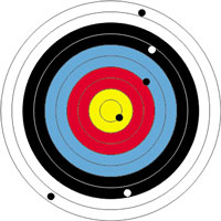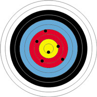 2. Bei jedem weiteren Training legt man Aufzeichnungen an, wo die Treffer liegen. Verkleinert sich der Streukreis, ist das Training erfolgreich, bleibt er gleich, sollte man etwas unternehmen. Dabei kann man den einen oder anderen Ausrutscher, sprich Pfeil außerhalb des Streukreises, akzeptieren.