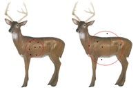 Bei 3-D-Tieren sollte man ein Gefühl dafür entwickeln, wie groß der Streukreis auf bestimmte Entfernungen ist. Dann sind auch nicht so gut geglückte Schüsse noch akzeptabel. Muss ich auf einen kleinen Hirsch auf 25 Meter schießen, überlege ich zuerst, wie groß könnte mein Streukreis sein. Komme ich zum Schluss, das er im Durchmesser größer, als das Tier hoch ist, muss ich damit rechnen, dass ein Pfeil daneben geht. Die Wahrscheinlichkeit, dass ich ihn mit dem 2. Pfeil treffe, ist allerdings sehr hoch.